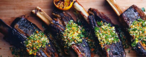 Συστατικά: 6 (ολόκληρα) κομμάτια από μοσχαρίσιο σιδηρόδρομο 1/4 της κούπας χοντροκομμένα φρέσκα ψίχουλα ψωμιού 2 τριμμένες σκελίδες σκόρδο 1 κούπα φρεσκοκομμένο μαϊντανό 1/4 της κούπας τριμμένο ξεφλουδισμένο χρένο (αγριοράπανο; horseradish) 1 κ.σ. ξύσμα λεμονιού 1 κ.σ. χυμός λεμονιού 3 κ.σ. λάδι (2 για τη σάλτσα
